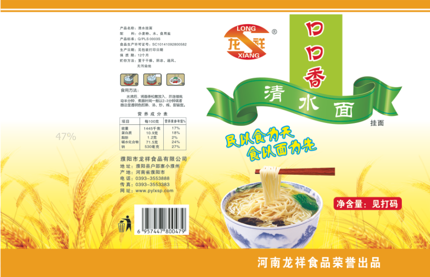 濮陽市龍祥食品有限公司位于河南省濮陽縣戶部寨鎮(zhèn)小濮州,始建于1994年,前期投資200萬元,經(jīng)過幾年的努力,大力開發(fā)市場(chǎng),由于市場(chǎng)的需求量急劇上升,出現(xiàn)供不應(yīng)求,于2004年擴(kuò)建,建成一座新型的現(xiàn)代化面粉加工企業(yè),并擁有全國(guó)先進(jìn)全自動(dòng)生產(chǎn)設(shè)備一套,產(chǎn)量由以前的100噸/天,提高到現(xiàn)在400噸/天。 2012年再次擴(kuò)大規(guī)模申請(qǐng)為濮陽市龍祥食品有限公司,注冊(cè)資金500萬元。2012年又投資800萬元新建掛面生產(chǎn)線一條,日產(chǎn)掛面50噸。龍祥食品有限公司現(xiàn)有職工120余人,總工程師1人,專業(yè)技術(shù)人員10人,經(jīng)濟(jì)師1人,會(huì)計(jì)師1人,銷售人員2人,優(yōu)秀專業(yè)人員20余人。  龍祥公司自創(chuàng)建以來,社會(huì)效益十分可觀。公司一直以“今天的質(zhì)量,明天的市場(chǎng)”為信念,“一切為了客戶需求,竭誠(chéng)追求完美品質(zhì)”為企業(yè)宗旨,走專業(yè)化經(jīng)營(yíng)和職業(yè)化管理的路子。
